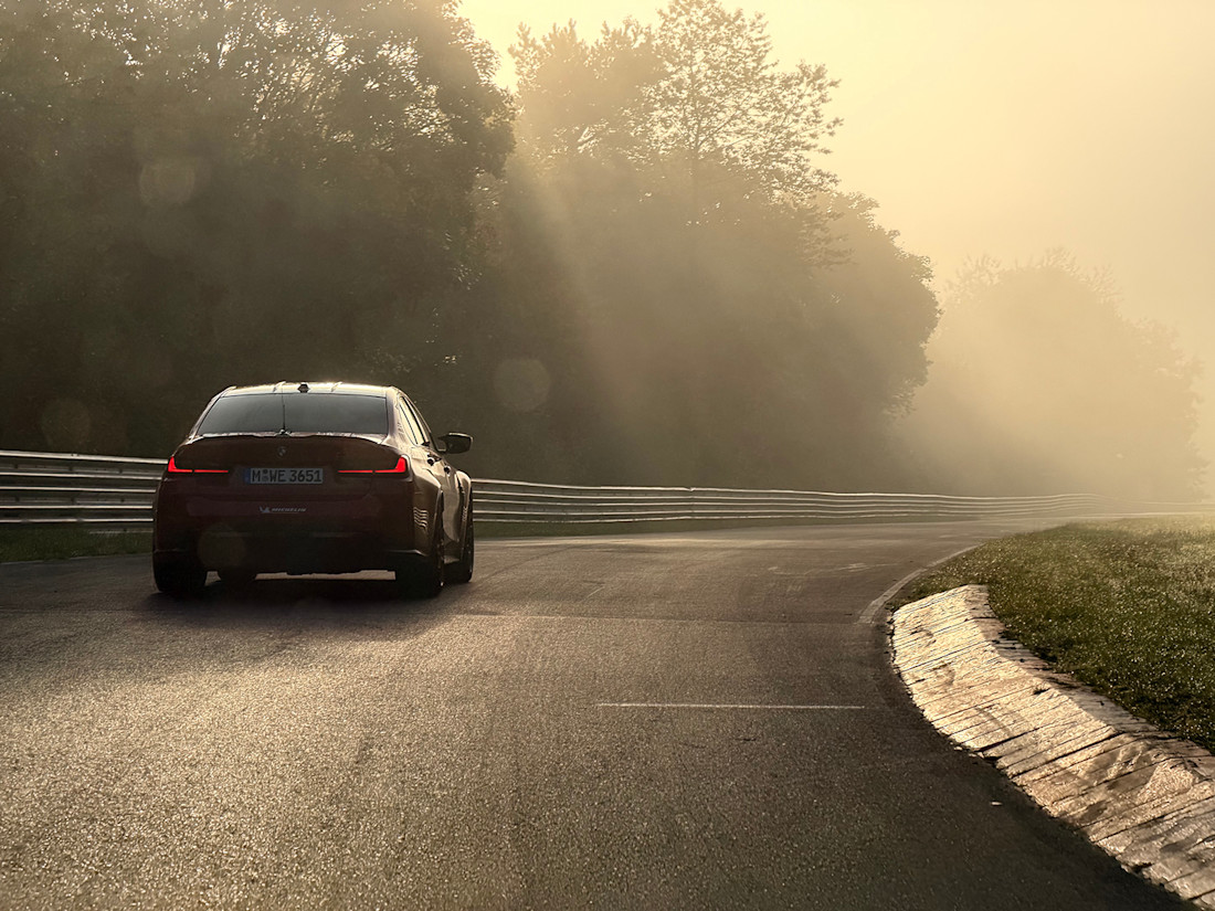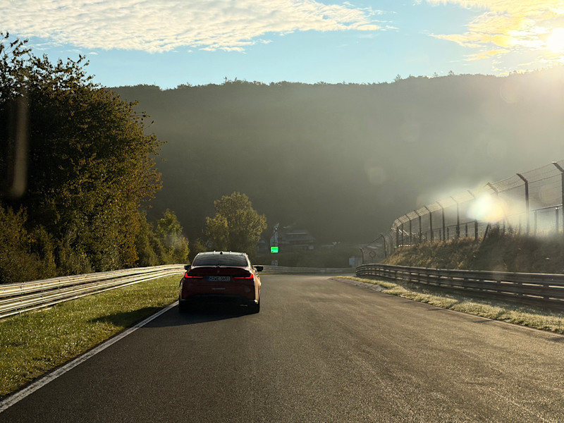 On our last afternoon, Sanchez took only a few of us out and we went for it, pushing faster, braking harder. He wasn’t talking much, but I could still hear his voice in my head, noting the turn-in points and visual cues to watch for. The sun was getting low above the trees. We caught another group of M4s and chased them into the setting sun, flowing through the corners that arrive like a stream of consciousness. It was sublime. It was beautiful. It reaffirmed my obsession with the Nordschleife, with cars, with driving, and with this silly career writing about all of it.