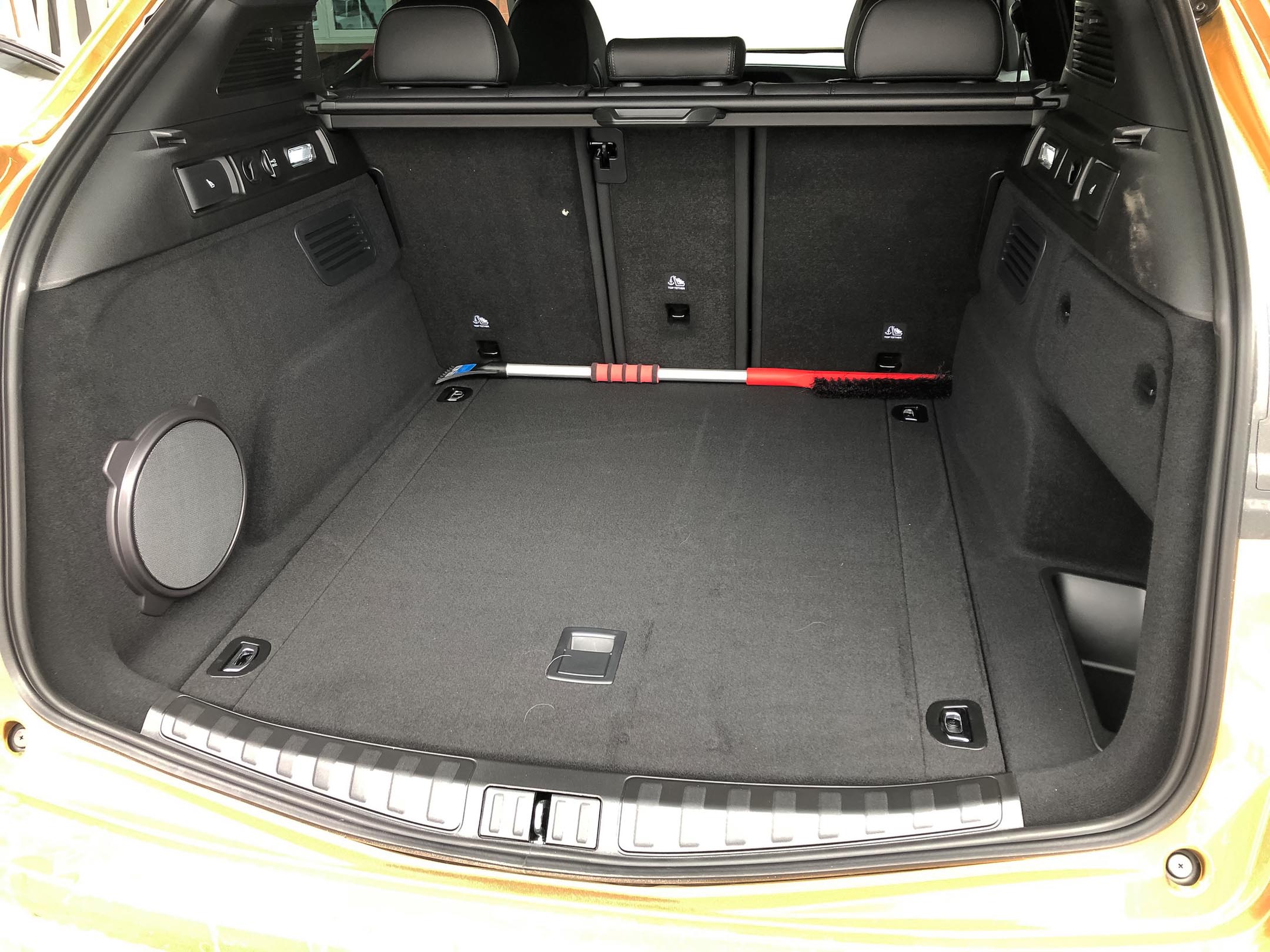The Stelvio’s tidy dimensions and sloping rear roofline mean it’s not as roomy as most rivals. Nonetheless, with a broad and flat cargo area measuring 524 L behind the second row, this compact crossover is plenty useful. The 20/40/20 second row easily folds to open up 1,600 L of space. This tester had the optional $600 compact spare. Without it, there’s some useful storage under the floor. The Veloce gets a 115-volt power outlet in the rear.