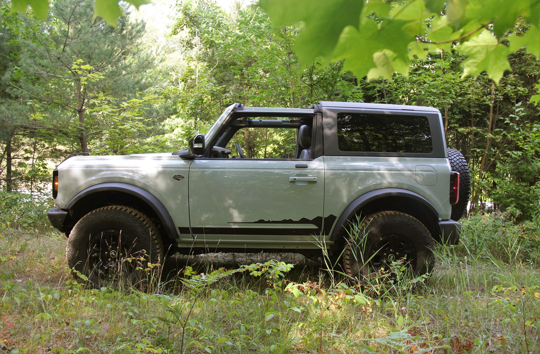 The base trim starts at $40,499 for the two-door version, which includes the 2.3L engine mated to a seven-speed manual transmission, cloth seats, and an eight-inch touchscreen. The top-trim Wildtrak four-door starts at $59,994 and goes up from there. I drove a four-door Badlands edition, which starts at $56,994 but was optioned up with the 2.7L V6 engine, Mid package, hard top and Sasquatch package, ringing in the register at an as-tested price of $74,539 before destination and taxes. For those uninitiated with the cost of getting into such an off-road vehicle, there may be some sticker shock, but you have to pay to play.