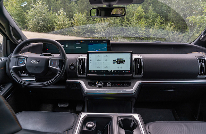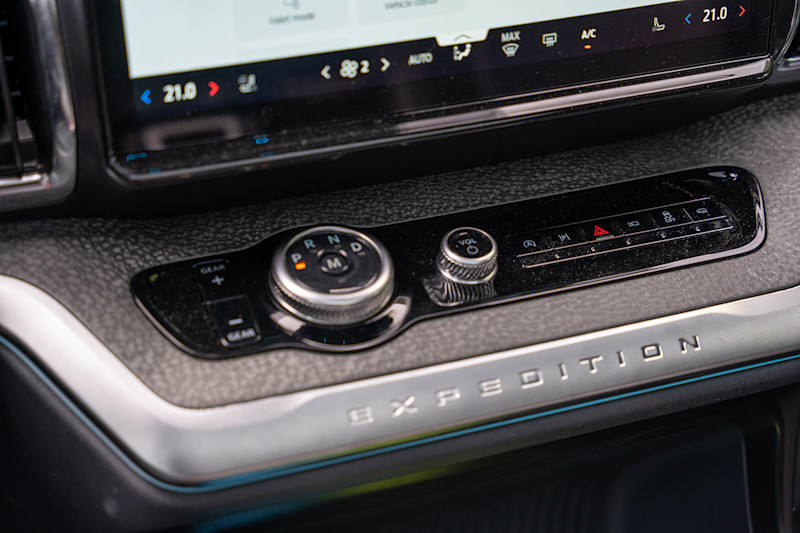 Beyond the forced digital interaction, the rest of the Expedition’s interface is good. The outward view is decent with so much glass, but it’s a large vehicle, so positioning the corners is best aided by the cameras providing their 360-degree view.