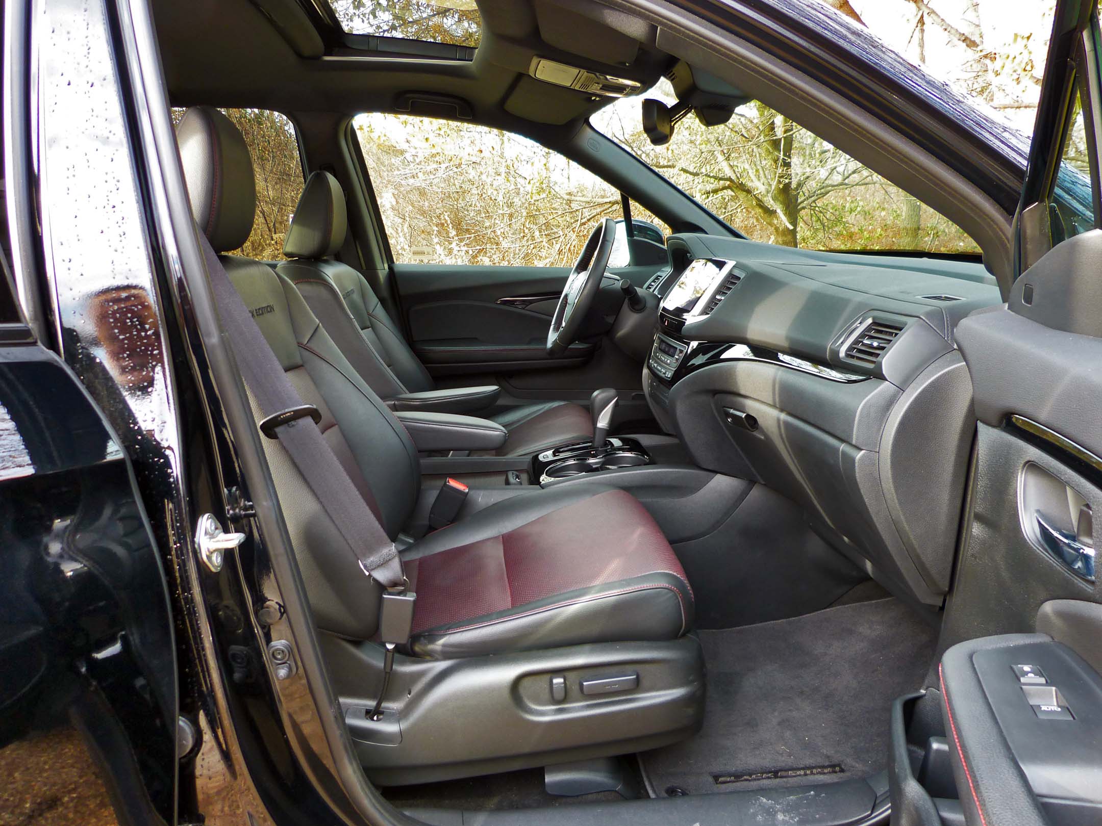 Inside, you get Honda’s previous-generation infotainment system. It has Android Auto and Apple CarPlay (Yay!) but no knobs for volume or tuning. This will be rectified with the next iteration, just as it has been addressed in the Civic, CR-V, and Accord. The leather interior has red stitching to add some visual flair, but the black-on-black interior was too dreary for my tastes. Also, the leather is thin, and was already beginning to crease and show the strains of wear on the seats.