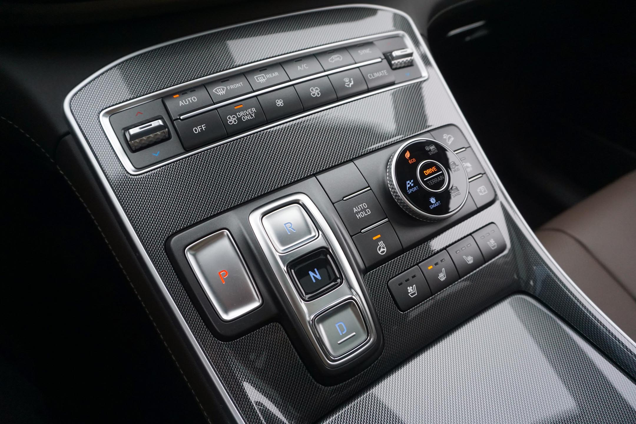There’s even a pass-through storage bin beneath the console afforded by the shift-by-wire system, though that comes at the cost of a new push-button gear selector on the centre stack. Otherwise, there’s a typically intuitive layout to the interior (this is a Hyundai product, after all), with big and boldly labelled buttons for just about everything. The climate and drive controls get particularly high marks this time around, with buttons like those found on a TV remote for those on in years and short of sight.