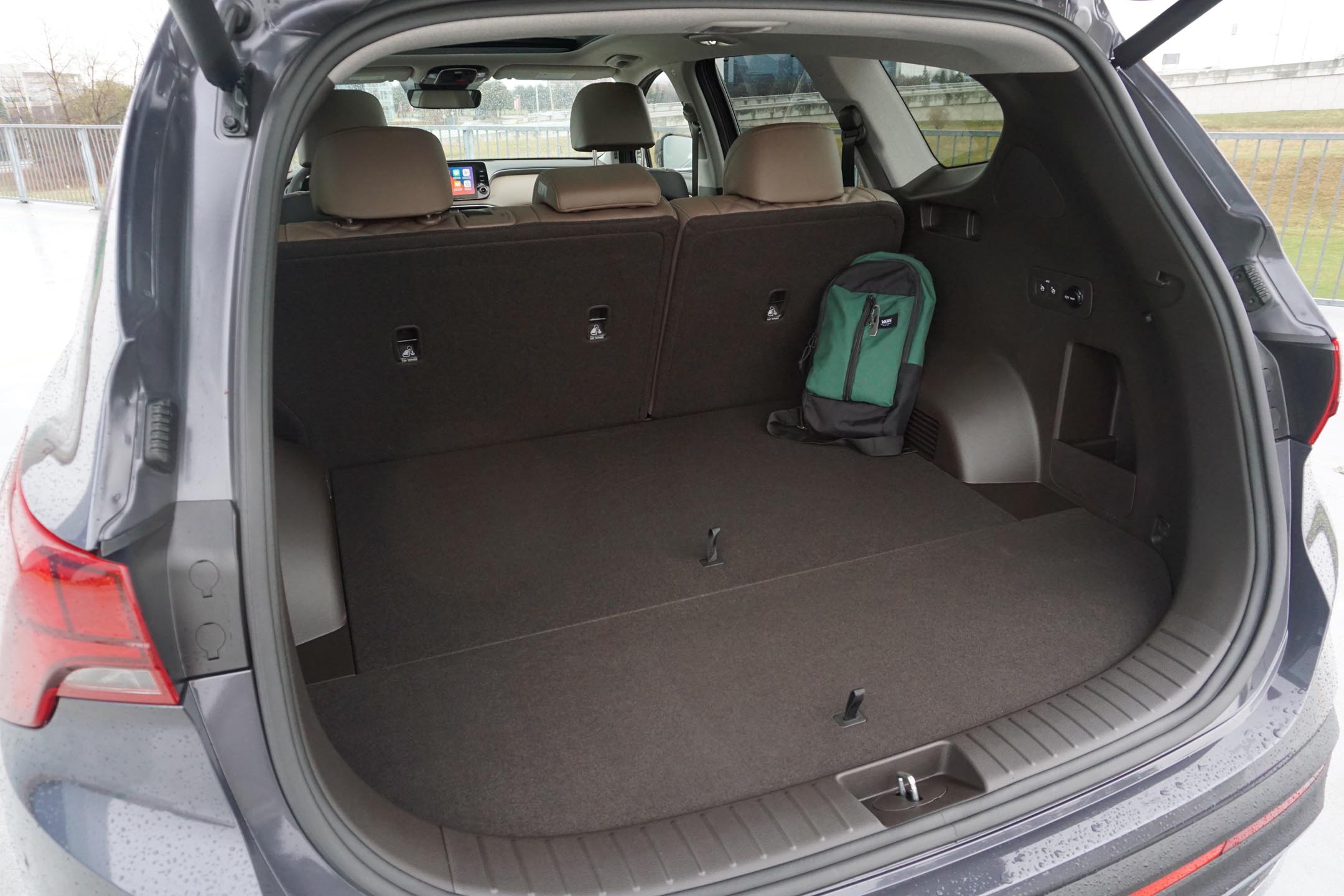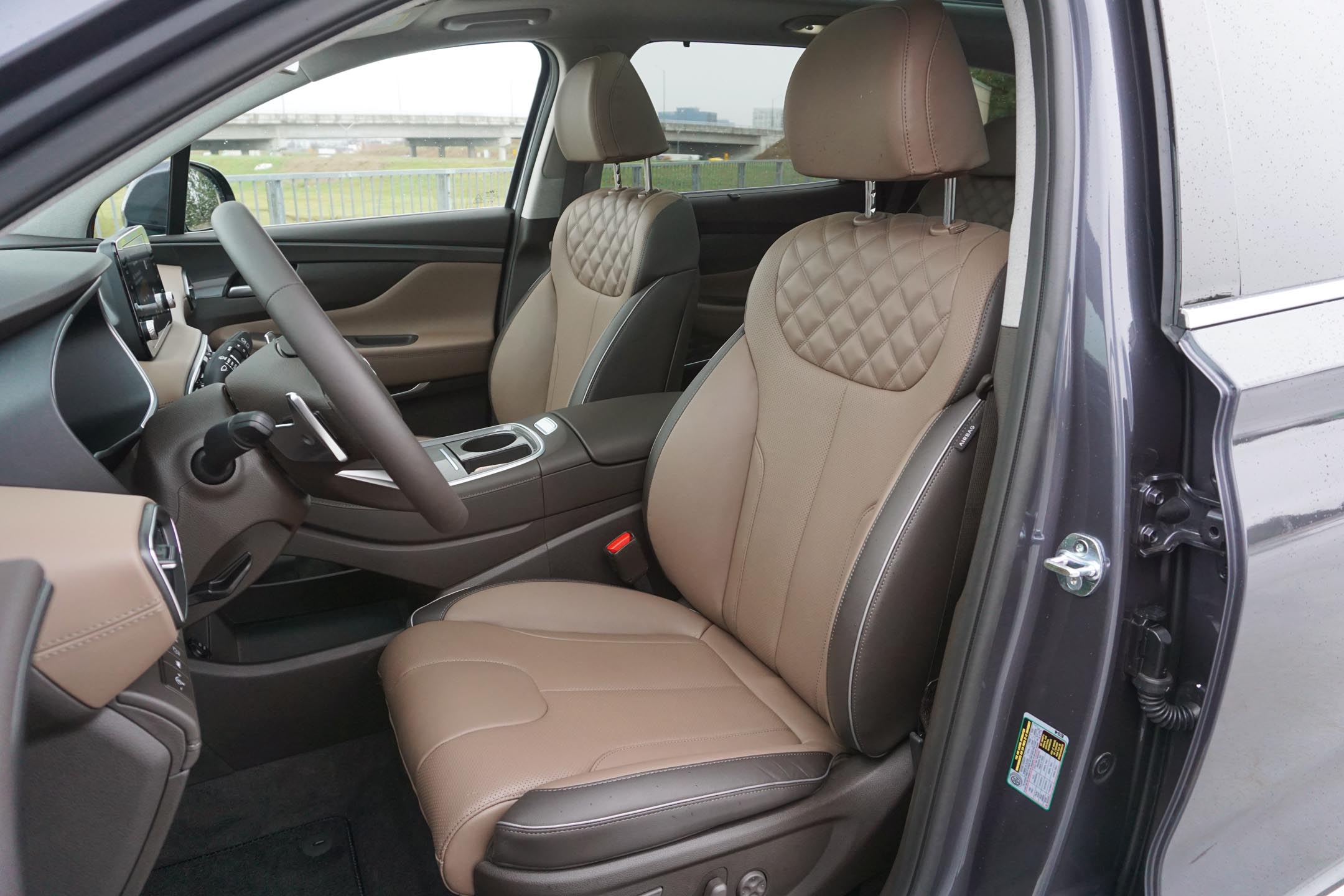 At eight inches, the touchscreen that handles infotainment duty is somewhat modestly sized, with this hybrid missing out on the gas-only Santa Fe’s 10.25-inch unit. It’s no matter, though, with a logical menu layout and good response to inputs. There’s also wireless Android Auto and Apple CarPlay connections that don’t come with that bigger screen, though the latter proved finicky during this truncated test, failing to recognize a device in the wireless charging slot prior to start-up.