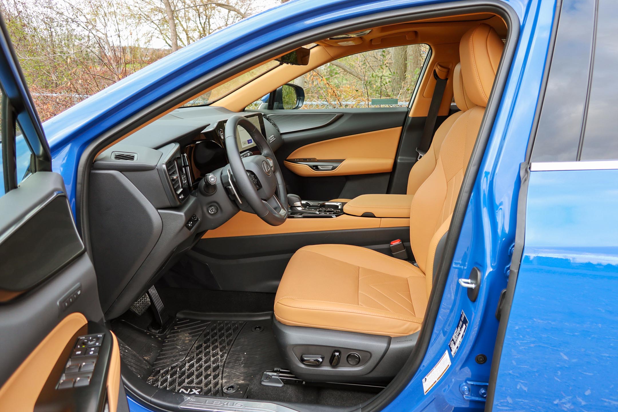 The NX 450+ includes such standard items as 20-inch wheels, a power tailgate, wireless Apple CarPlay and Android Auto, 14-inch infotainment screen, premium stereo, heated steering wheel, auto-dimming mirrors, heated and ventilated front seats, heated rear seats, rain-sensing wipers, and power sunroof.