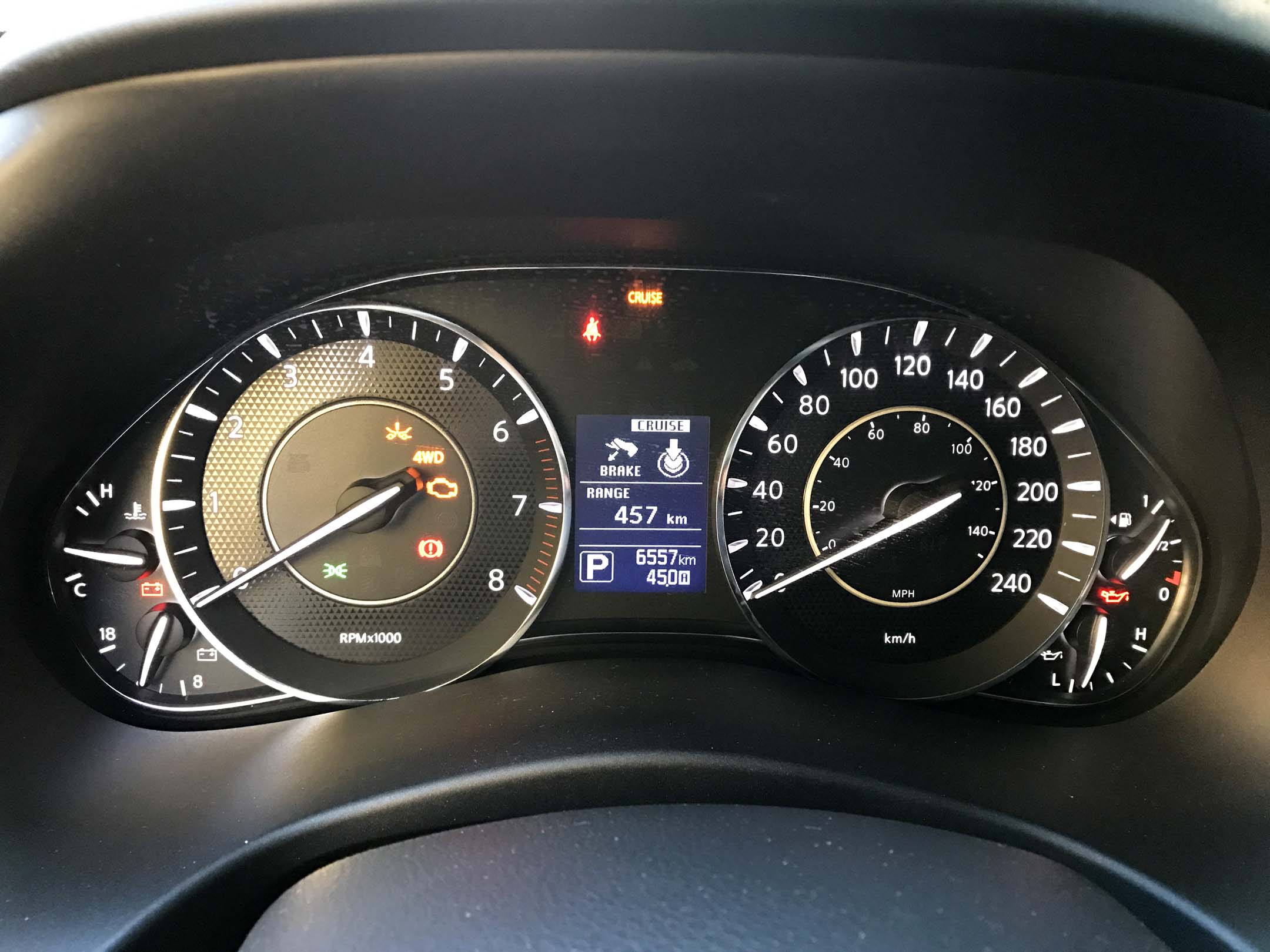 We engaged Low range gear (4 Low) when attempting to cross a 50 cm snow berm created by a passing snowplow and the Armada had no trouble plowing through it. For steep downhill sections, 4 Low can be engaged but we were surprised that Downhill Assist is not available in the Armada.