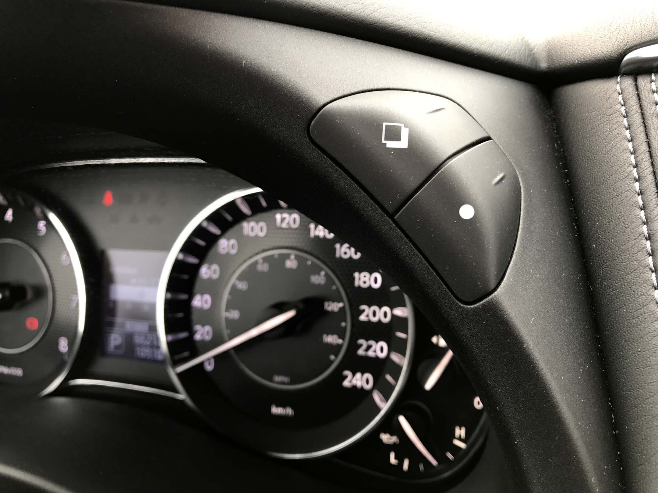 The front seats are big and comfortable with 8-way power adjustments including lumbar. The base SL trim includes heated front seats while the top-of-the-line Platinum trim offers heated and cooled front seats. The driver faces a handsome leather-wrapped power tilt/telescopic heated steering wheel with integrated controls for audio, telephone, cruise, radar cruise control and 360-degree around-view display. Behind the wheel, bright, backlit round instruments – six in all – sit astride a central digital trip computer display operated by a button on the upper dash.