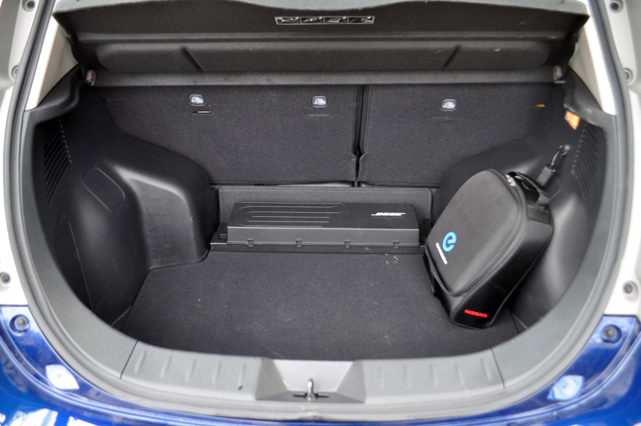 The Leaf’s quietly sophisticated driving personality doesn’t extend to its suspension tuning, unfortunately, which feels more compact-car bouncy than one may expect for an as tested price of $43,115 for our fully loaded SL tester. Plus the suspension is certainly set for soft when it comes to handling, with noticeable body lean dissuading any rapid relapses from one’s regularly scheduled hypermiling.