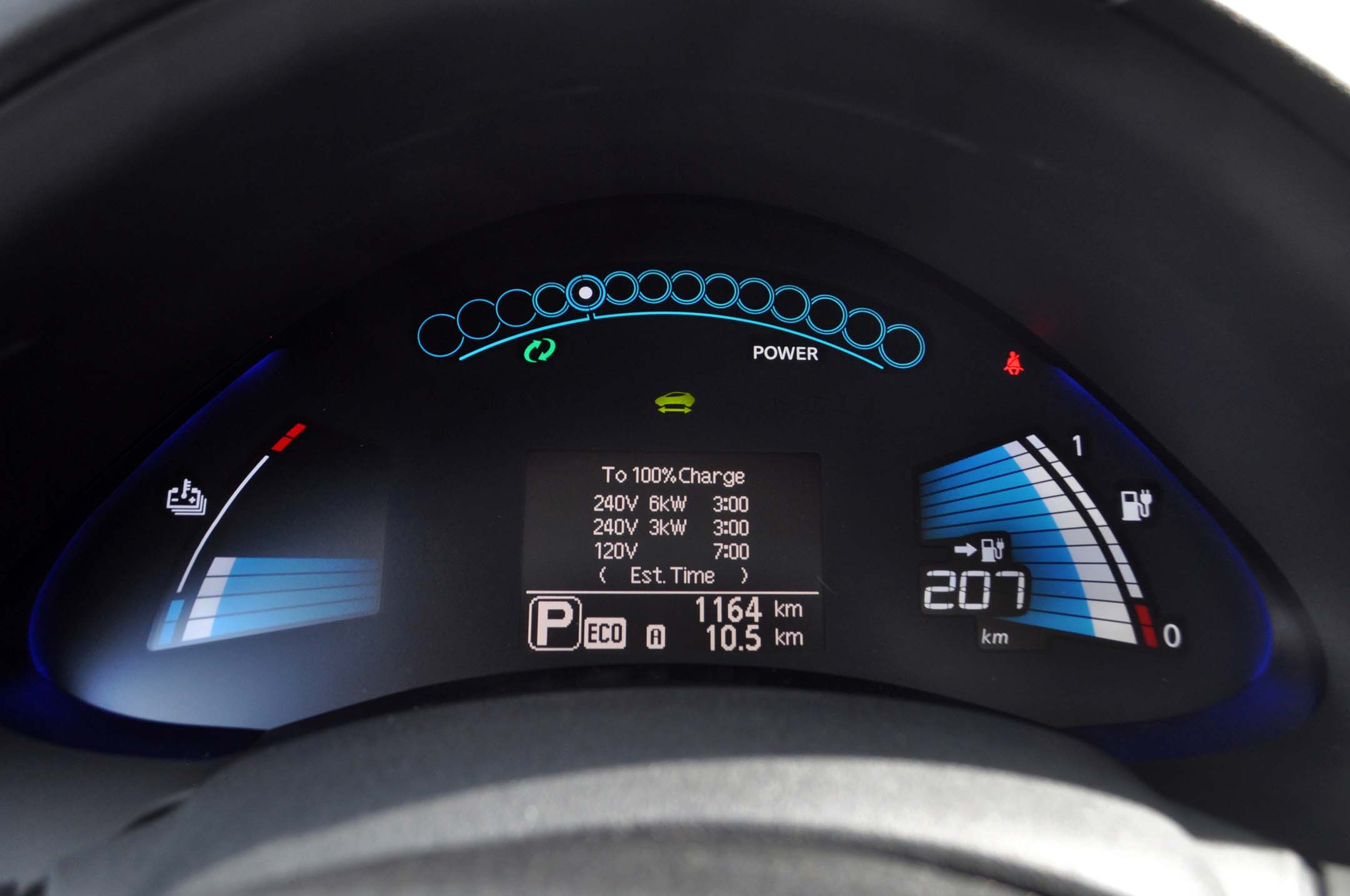 Long distances (100 km or more) were originally problematic for the Leaf, but are becoming less so in the three rebate provinces, as all three governments have invested significant funds into adding public chargers. There are still some “dead zones”, which may necessitate some longer stops at an L2, or if you’re really unlucky with the charger overlords, plugging into a regular 110-volt outlet – which takes roughly 26 hours to fully recharge a depleted battery.