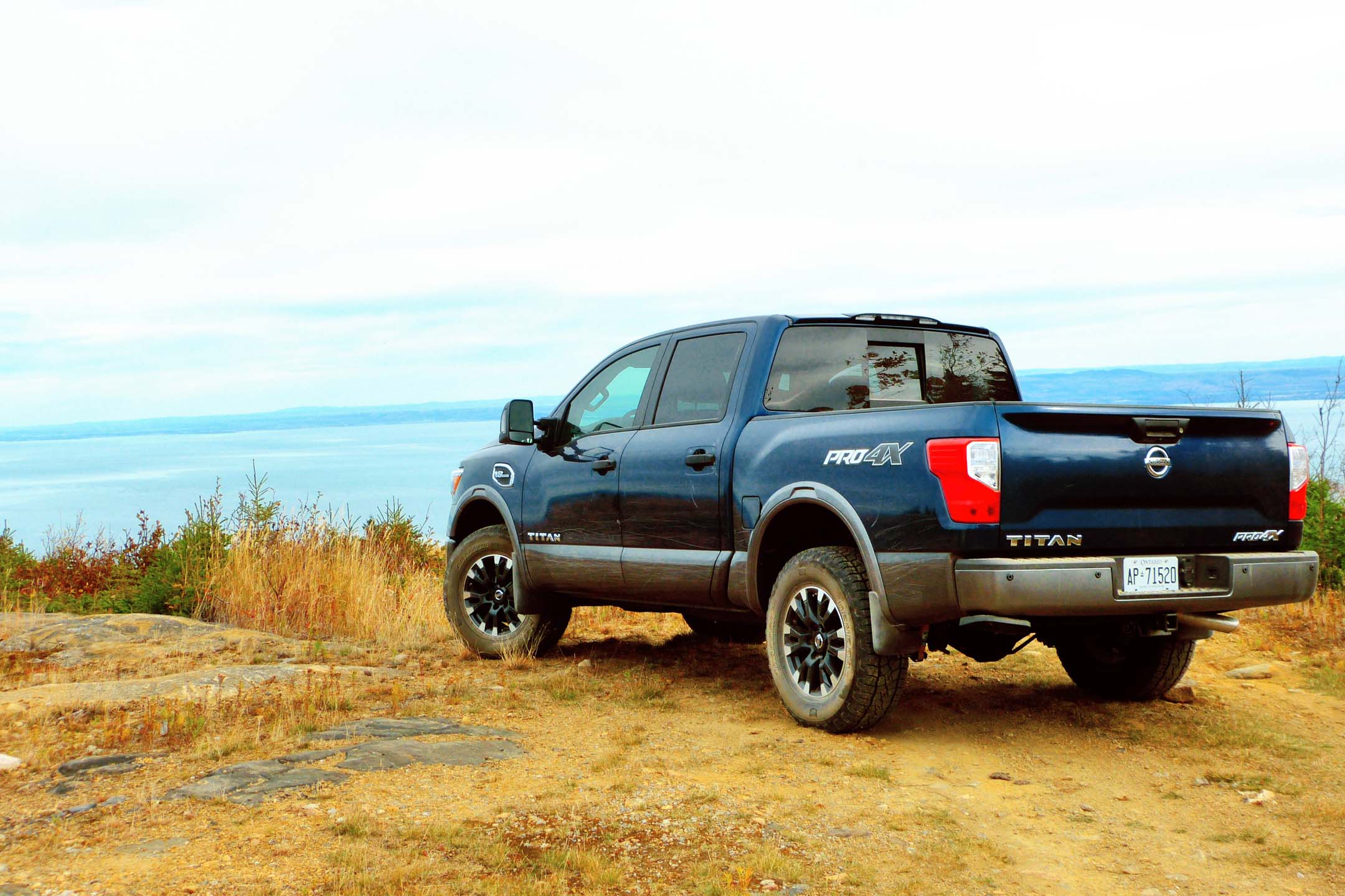 The Pro-4X is the truck we took on a brief off-road course. More of a cottage-road with big rocks and some minor washouts, the course nonetheless demonstrated the Titan’s ability to cope with the biff and barge of the trails. The 18-inch wheels (as opposed to 17s and 20s on other Titans) allow for the Titan-specific all-terrain tires to be fitted. These high-profile tires do a lot to soak up the ugly stuff while still providing feedback through the wheel.