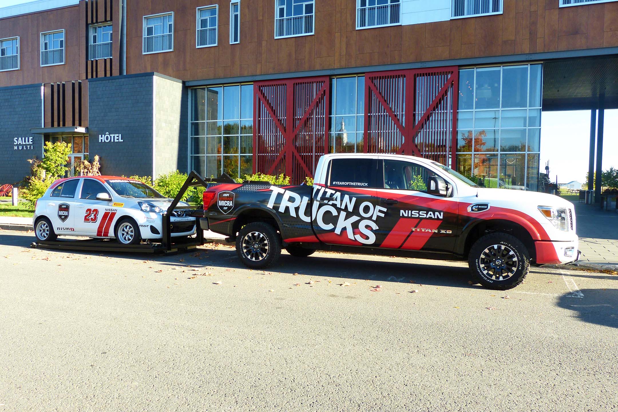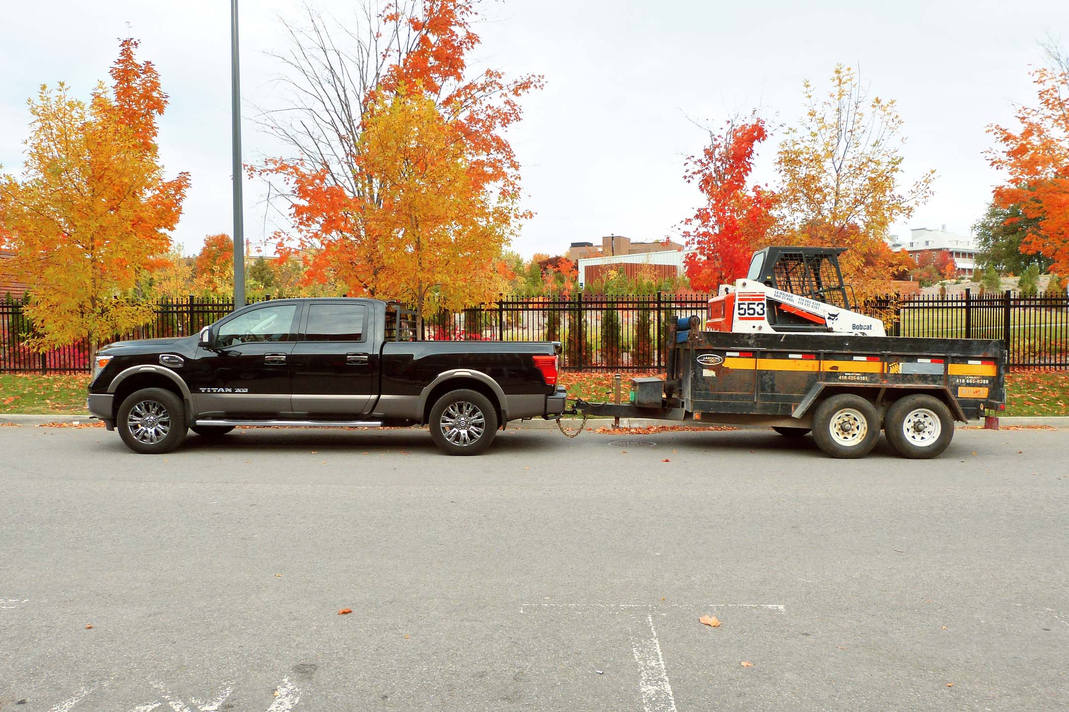 If you really want bulk torque, you’ll need the diesel with 310 hp and 555 lb-ft. The Cummins donk pulls hard from the line, but you can feel the diesel lugging during highway acceleration. There’s some jounce and vibration to it if you prod hard on the juice from about 80 km/h, but it will confidently maintain pace with a trailer on board on steep inclines. Nissan put us on one of Quebec’s steepest hills and as my ears popped and the truck arrester-beds passed by, my co-driver asked if I was flat to the floor – nope. I was only at half throttle, steadily churning uphill at a constant 90 km/h while towing a 6,000 lb trailer with a bobcat on it.