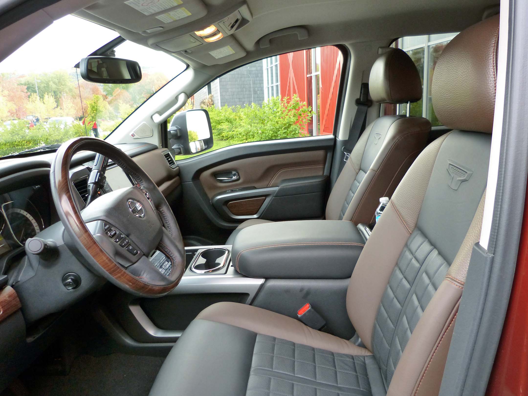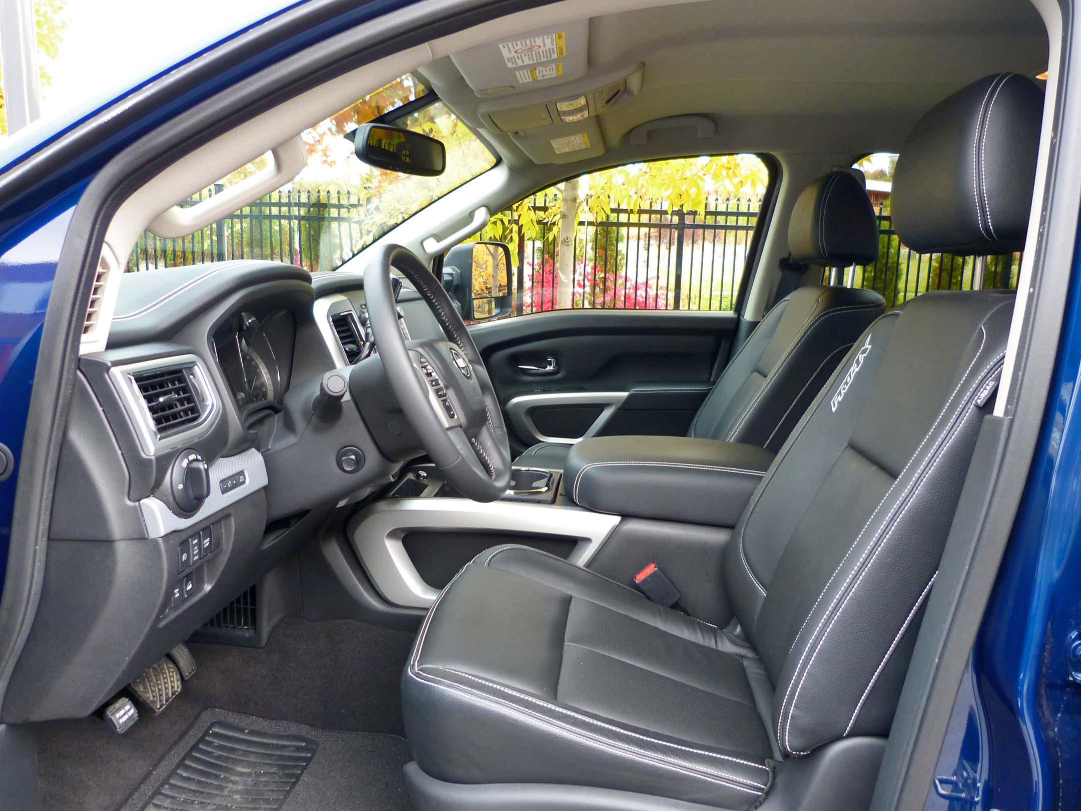 Adding “Luxury” to the Pro-4X gains leather seats, heated steering wheel and rear seats, remote-start, heated and cooled front seats, and the Titan boxes.