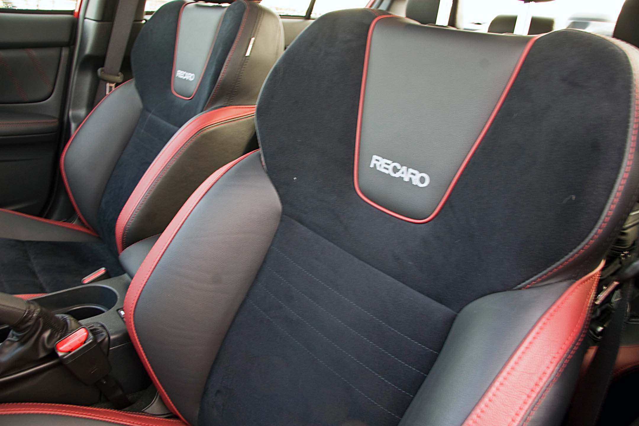 An optional RS Package finishes it off for $2,300, and adds leather and ultra-suede Recaro sport seats, upgraded Jurid brake pads and red-painted callipers. Because it’s equipped with a six-speed manual, Subaru’s EyeSight safety package (pre-collision braking, pre-collision throttle management, lane departure and sway warning with lane assist, and adaptive cruise control) isn’t available – it only works with CVT-equipped models.