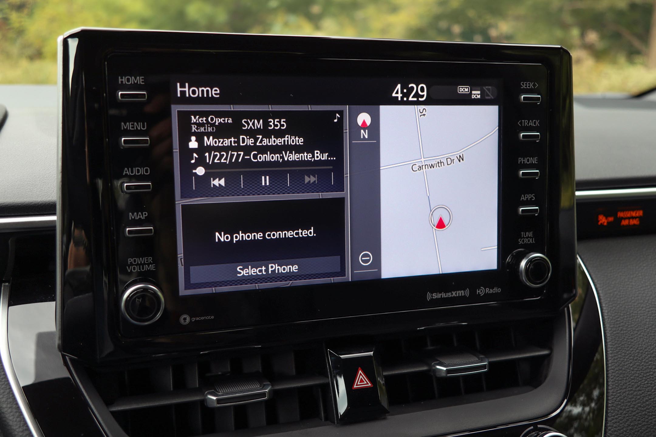The Corolla’s cabin may look plain, but that translates into systems that are very easy to operate. Even at my tester’s top trim level, the controls are easy to use. There are dials for the stereo volume and tuning, and for the temperature and fan speed. You access menus on the touchscreen with hard buttons, and the icons are simple once you’re there.