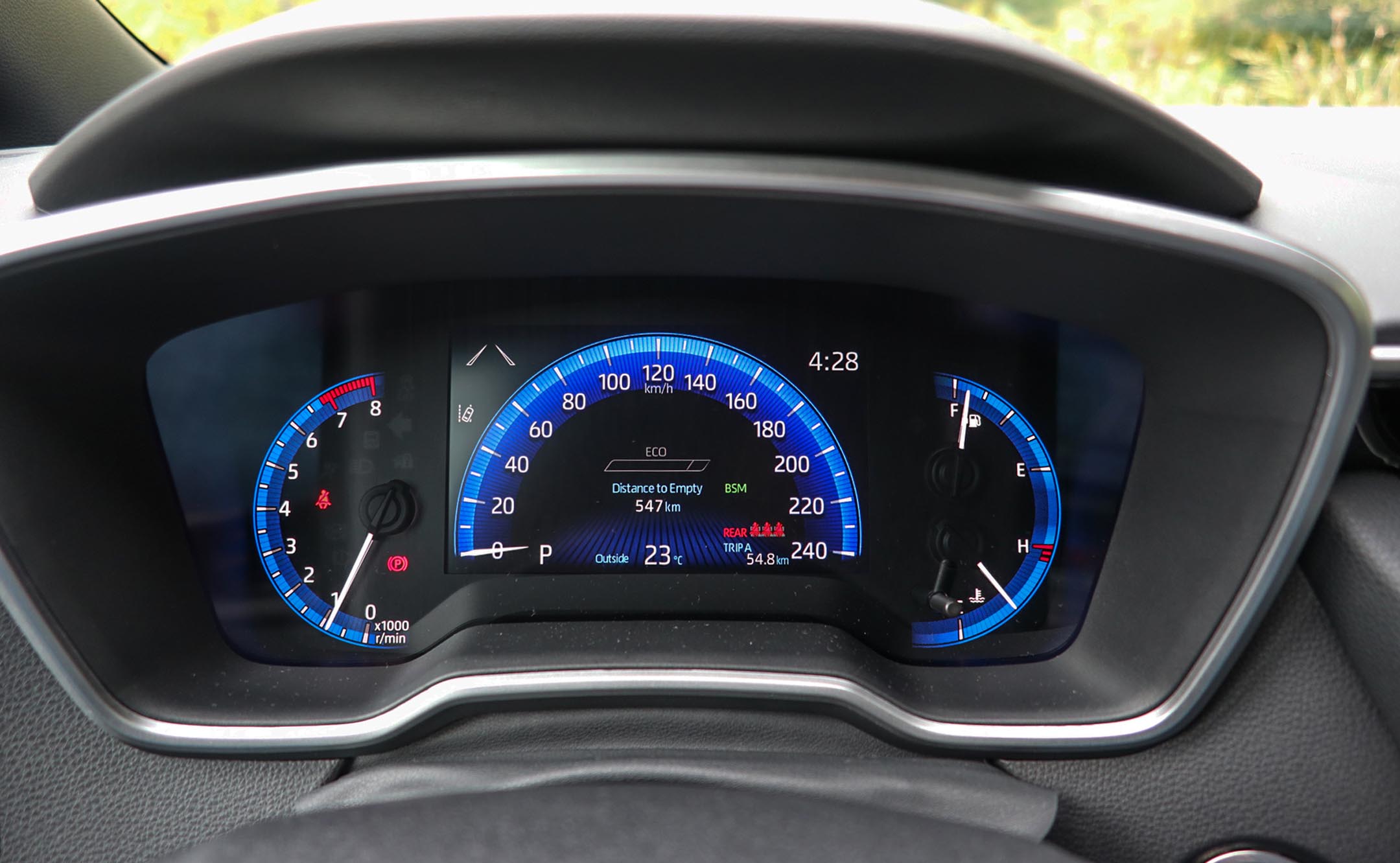 The Corolla with 2.0L is officially rated by Natural Resources Canada (NRCan) at 7.7 L/100 km in the city, 6.1 on the highway, and 7.0 in combined driving. In my week with it, I got 7.4 L/100 km. As you’d expect, it takes regular-grade, 87-octane fuel.