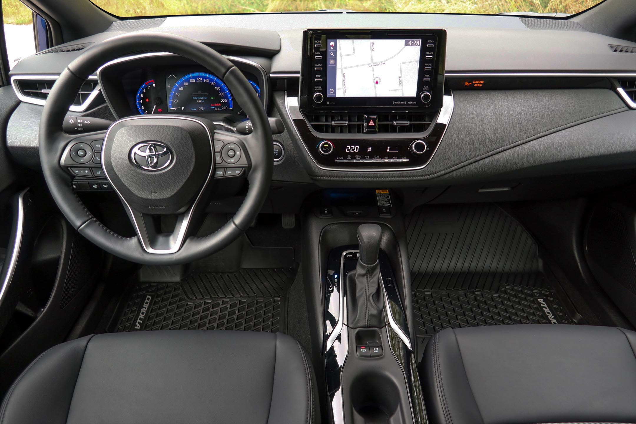 Every Corolla includes emergency front braking with pedestrian and bicycle detection, high-speed adaptive cruise control, lane-departure alert with steering assist, automatic high-beam headlights, and the aforementioned automatic rear lighting. That’s an important feature and one that more automakers will be adding to compensate for drivers who don’t turn on their headlights at dusk or in bad weather. (Transport Canada calls them “phantom vehicles.”) The LE, one step up from the base L trim, adds blind-spot monitoring and low-speed adaptive cruise, both of which carry forward on all other trims.
