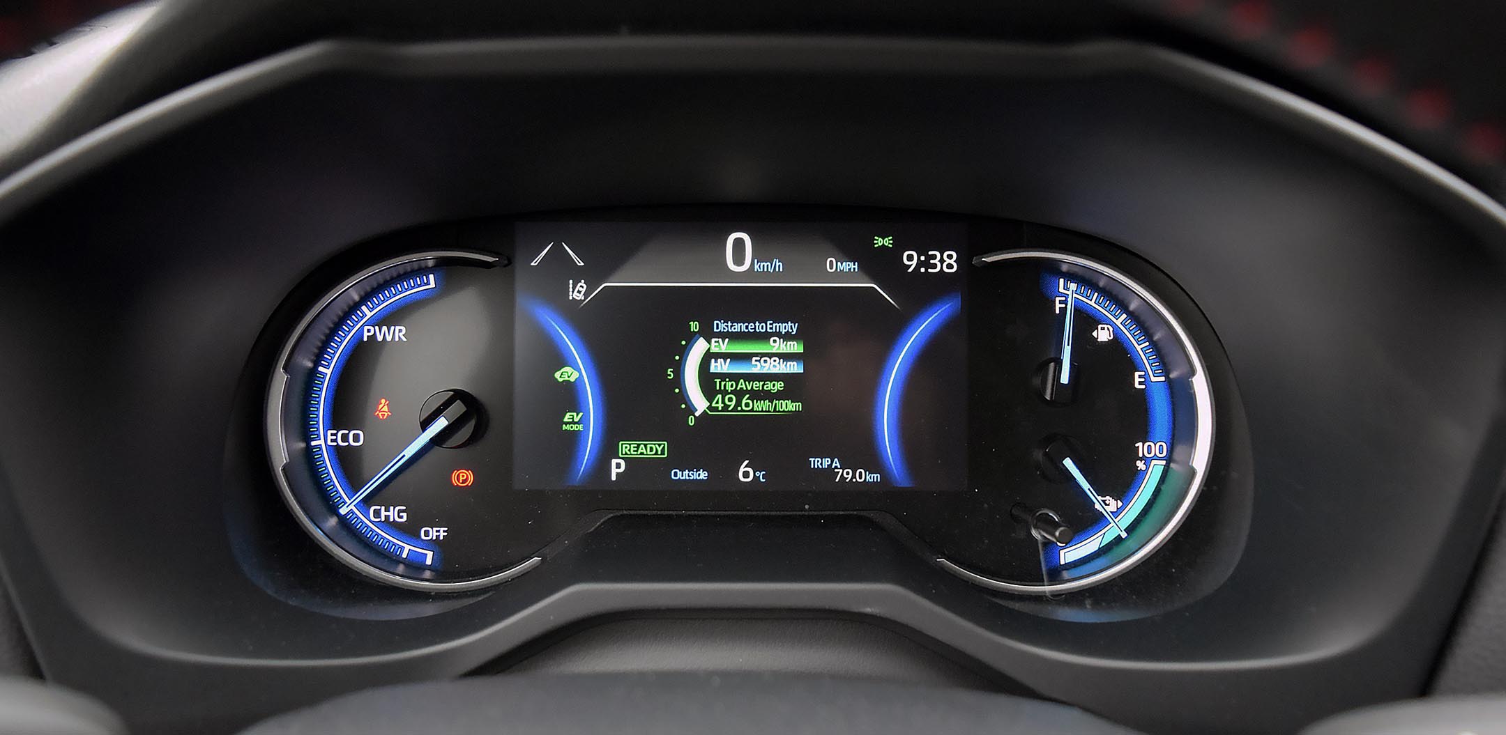 With 68 km of pure electric range, the RAV4 can run gas-free for most short commutes. You can also save that electric range, allowing the vehicle to operate as a hybrid, where it returns 5.7 L/100 km in the city, 6.4 on the highway, and 6.0 combined. That fuel economy is equal to the regular hybrid version of the RAV4 and an improvement of 2.0 L/100 km compared to the gas-powered all-wheel-drive model.