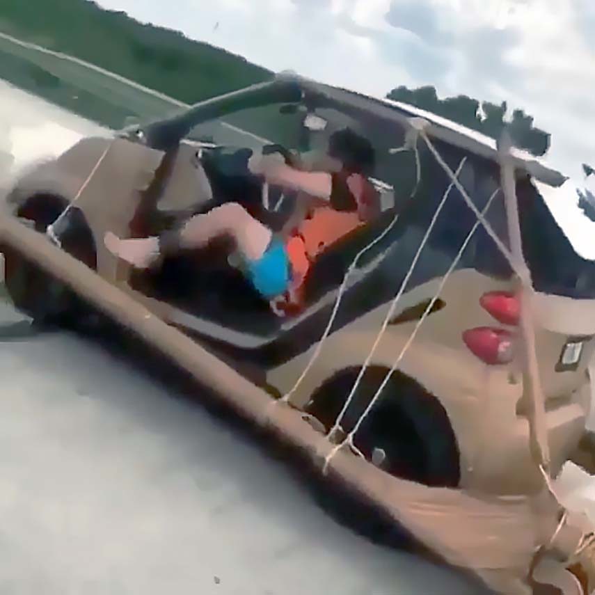 Here’s a car from the Stone Age with the crashworthiness of a vehicle from the days before the IIHS and NHTSA – captured by a camera of similar vintage, it seems. Details are scarce, but since this is a modification of a Smart ForTwo, it’s at least slightly faster than pedalling with your feet, though it’ll likely still tip over if you rest a rack of ribs on the window frame.