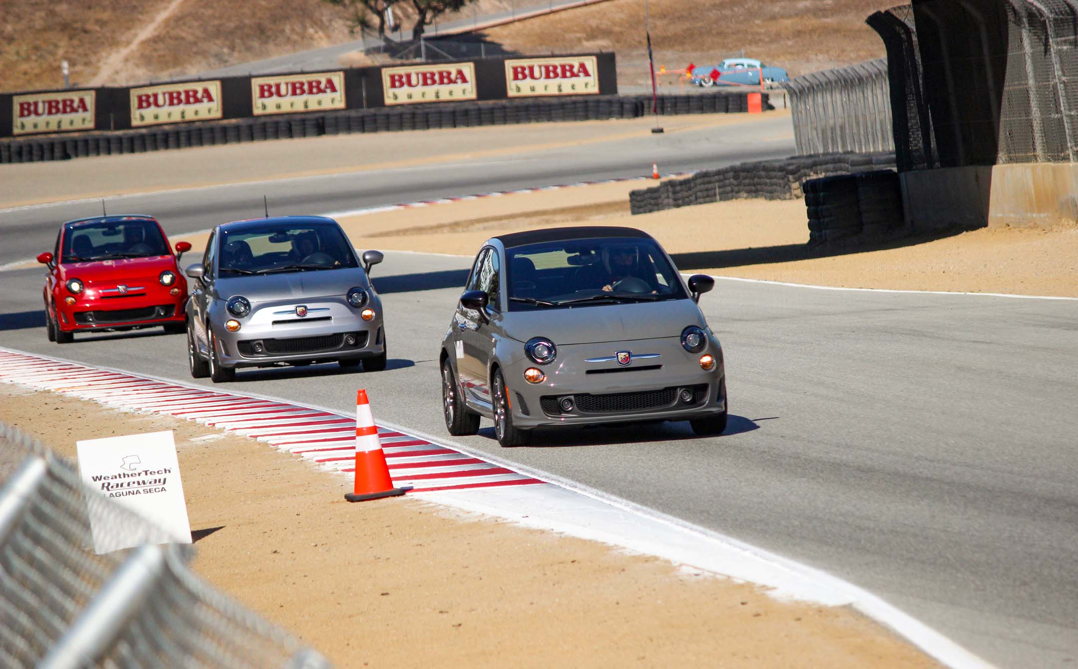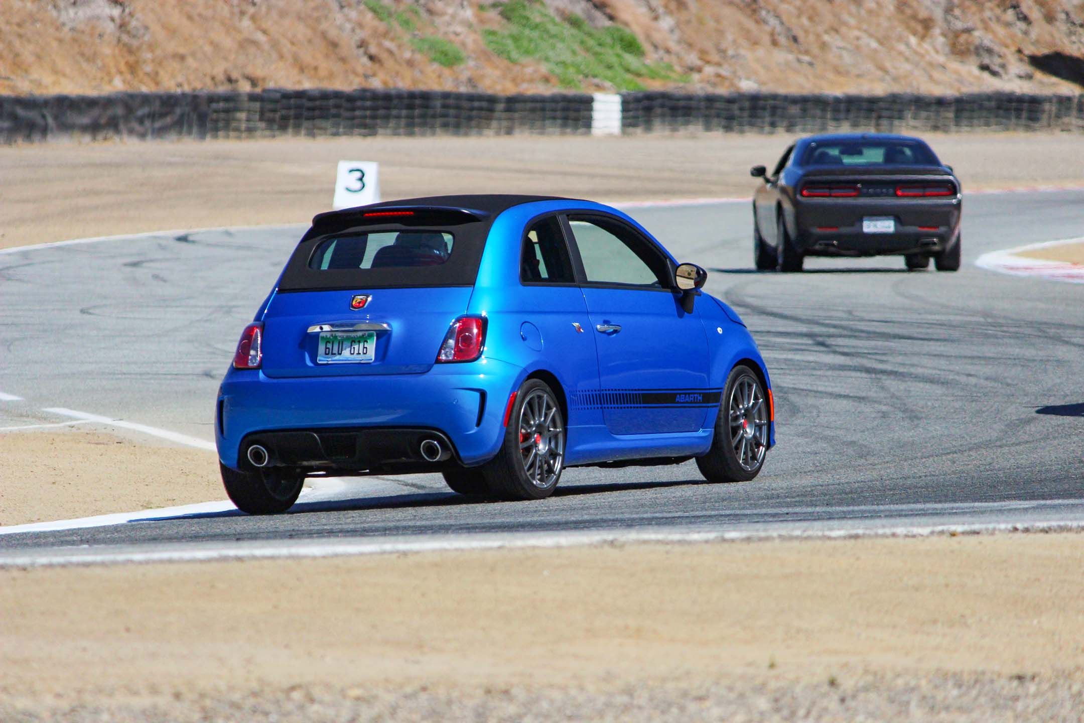 Things change a little when you’re driving a low-slung sports car as I now was: the Fiat 124 Spider Abarth, a firecracker of a car that just happens to also have a partnership with Mazda in that it shares its platform and various other bits with the MX-5 sports car. Not its engine, however, as it gets a turbo 1.4L four-cylinder as opposed to the Mazda’s naturally aspirated 2.0L four. The 124 also has one of the louder, angrier exhaust notes you’ll find at the sub-$35K level. In fact, the only other car at the level that sounds anything like it happens to be the 124’s now-discontinued Fiat 500 Abarth sibling. Which, as it happens, we’d also be driving on the track.
