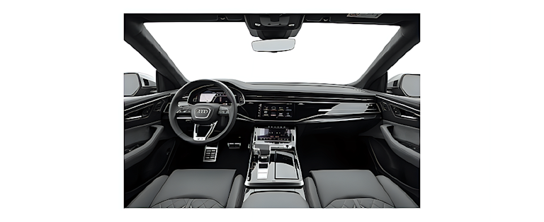 Inside, the SQ8 gets sport front seats with four-way lumbar, heated seats front and rear, ventilated front seats, rear-door sun shades, an auto-dimming rearview mirror, four-zone A/C, power door closers, Apple CarPlay, 10.1-inch touchscreen, head-up display, and wireless phone charging.